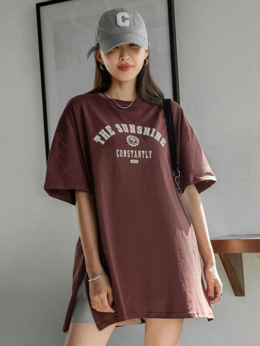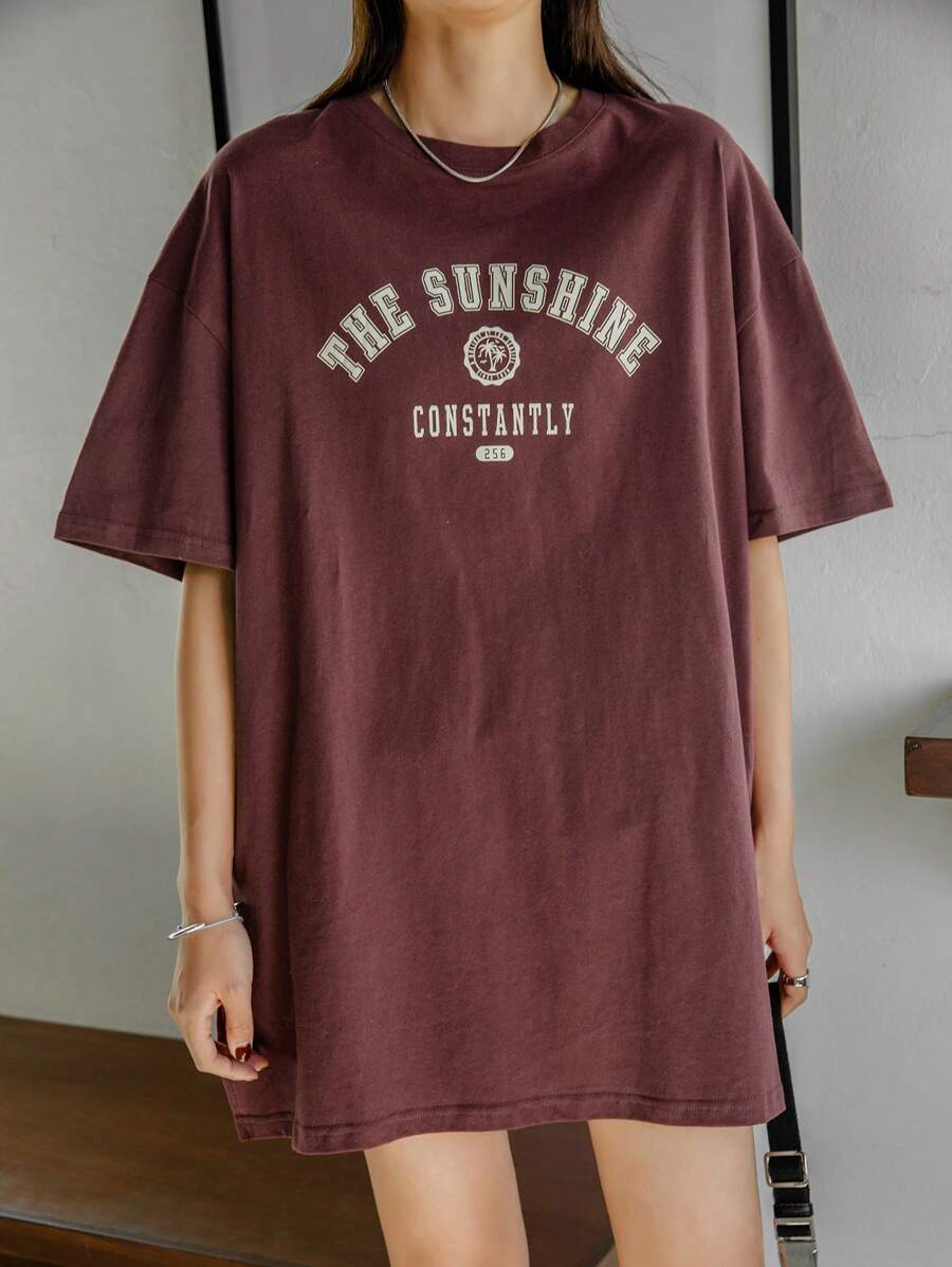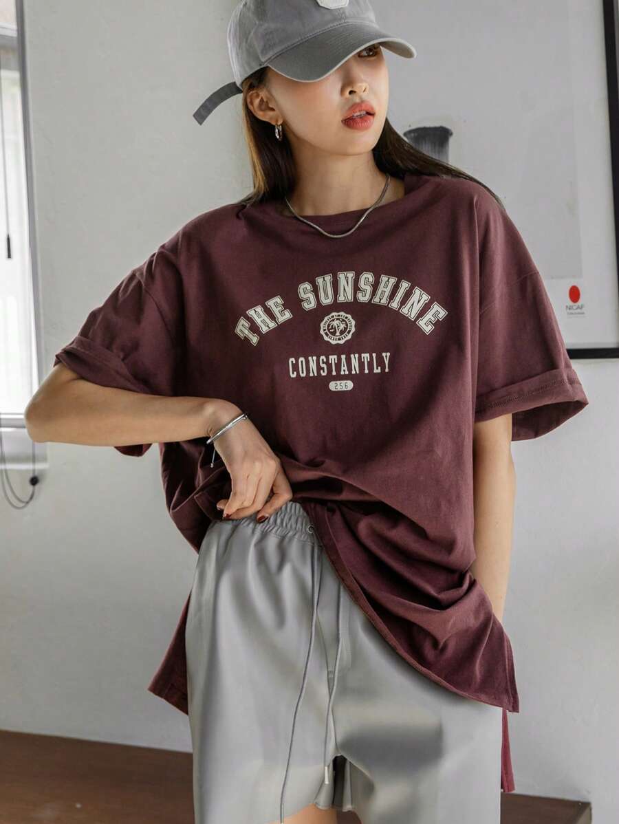 Letter Graphic Drop Shoulder Tee Summer Oversized T-Shirt Preppy Tops