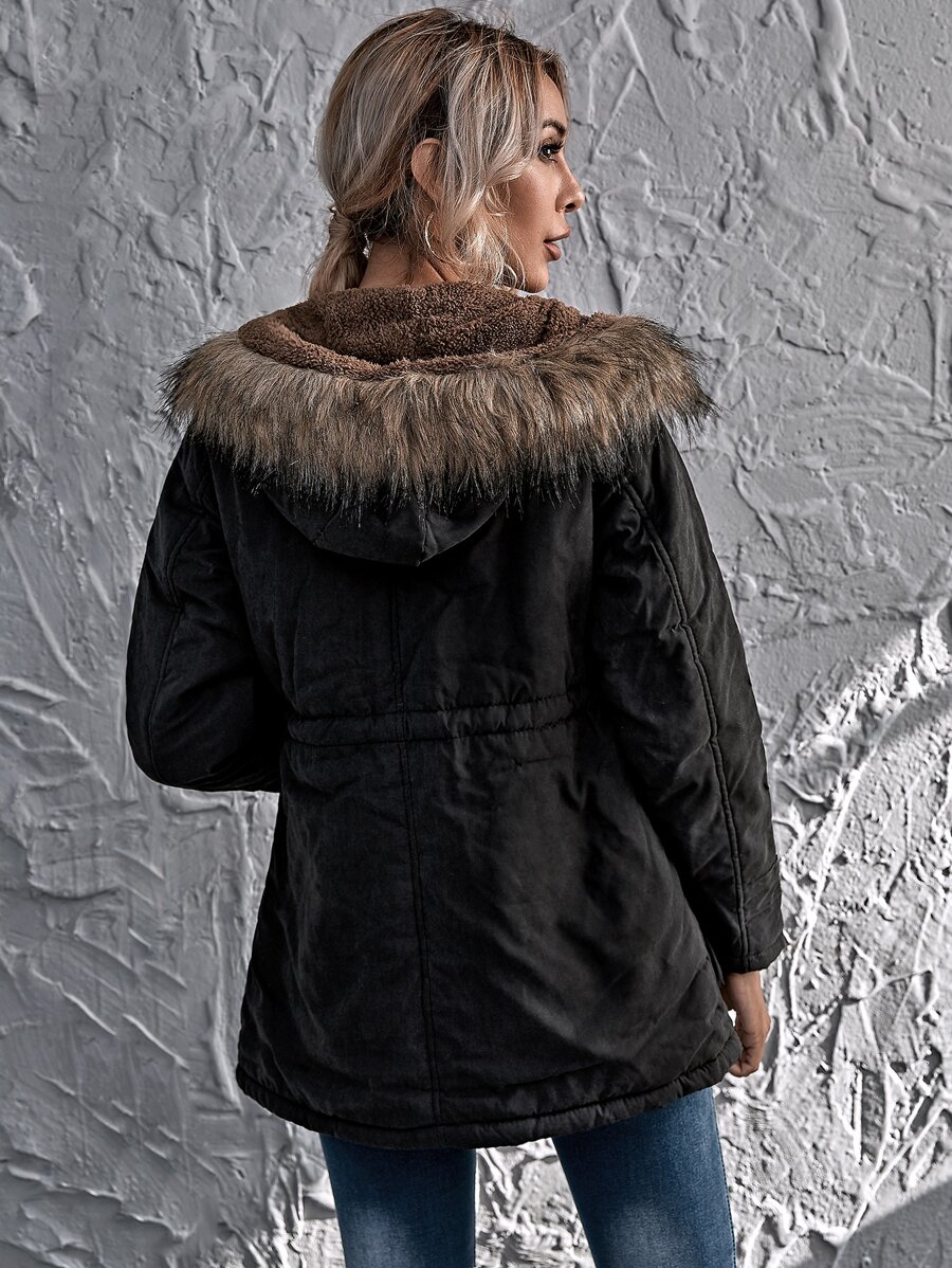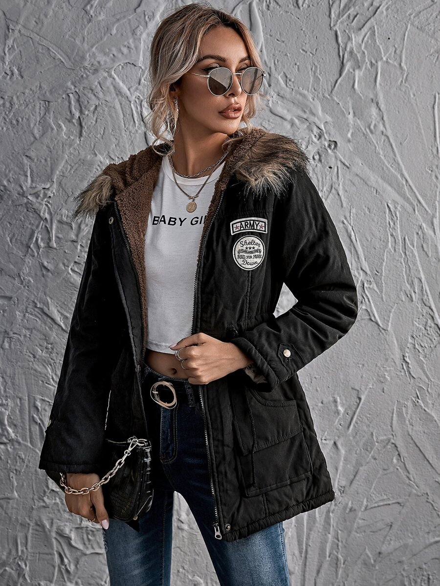 Letter Patched Sherpa Lined Hooded Parka Coat