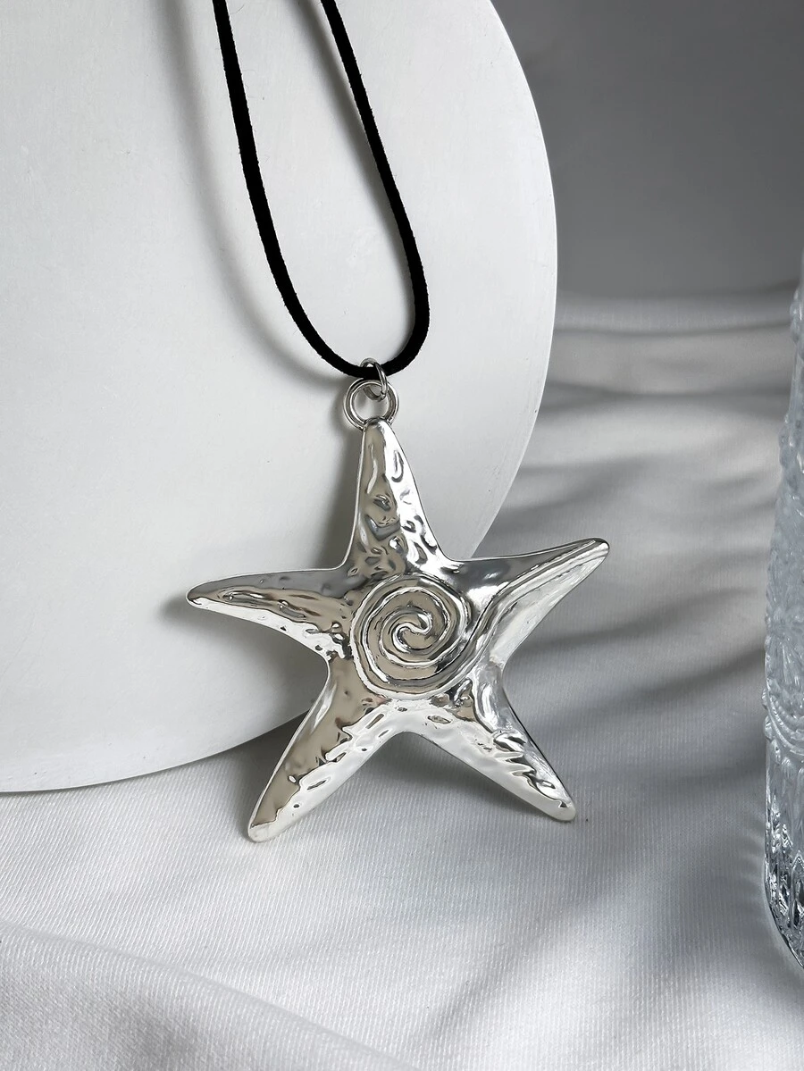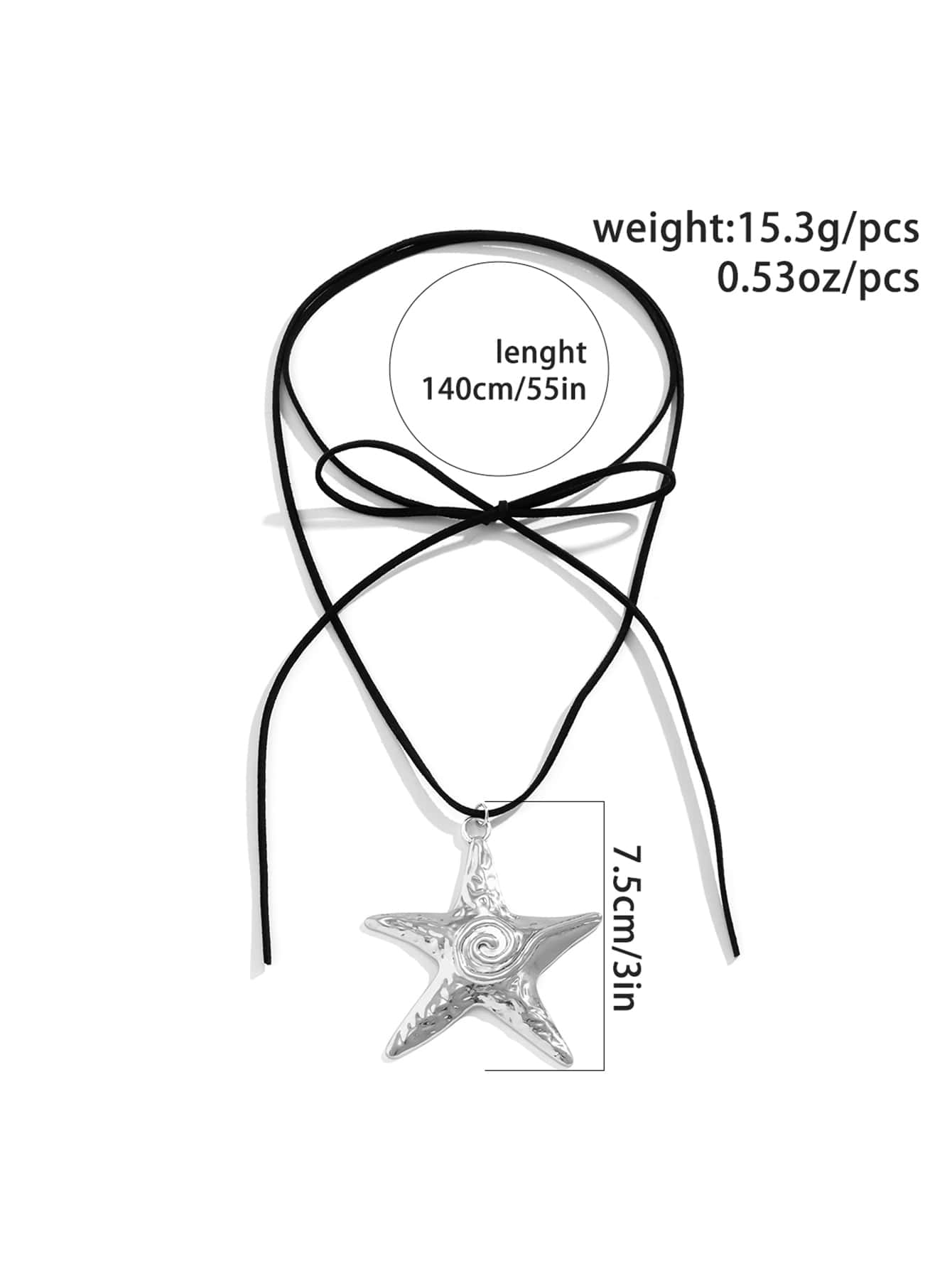 1pc Fashionable Zinc Alloy Textured Starfish Charm Long Necklace For Women For Daily Decoration