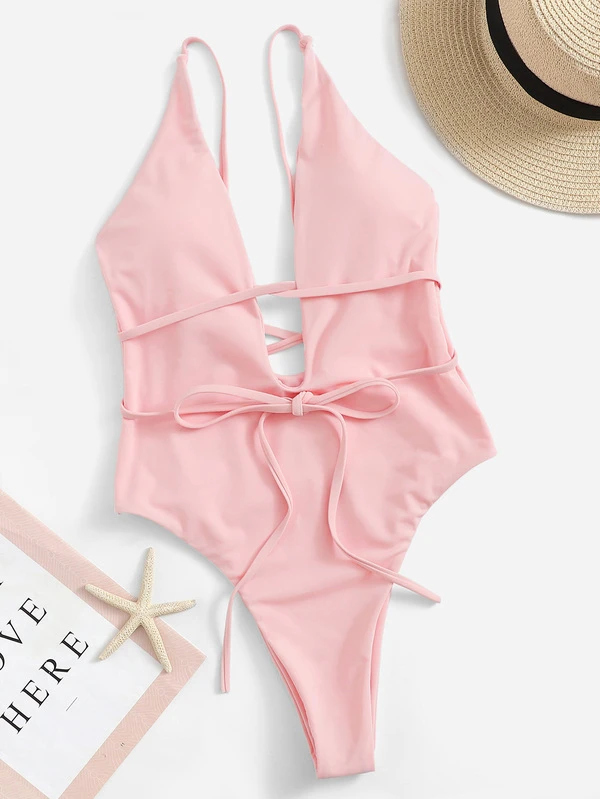 Low Back Deep Plunge One Piece Swimwear