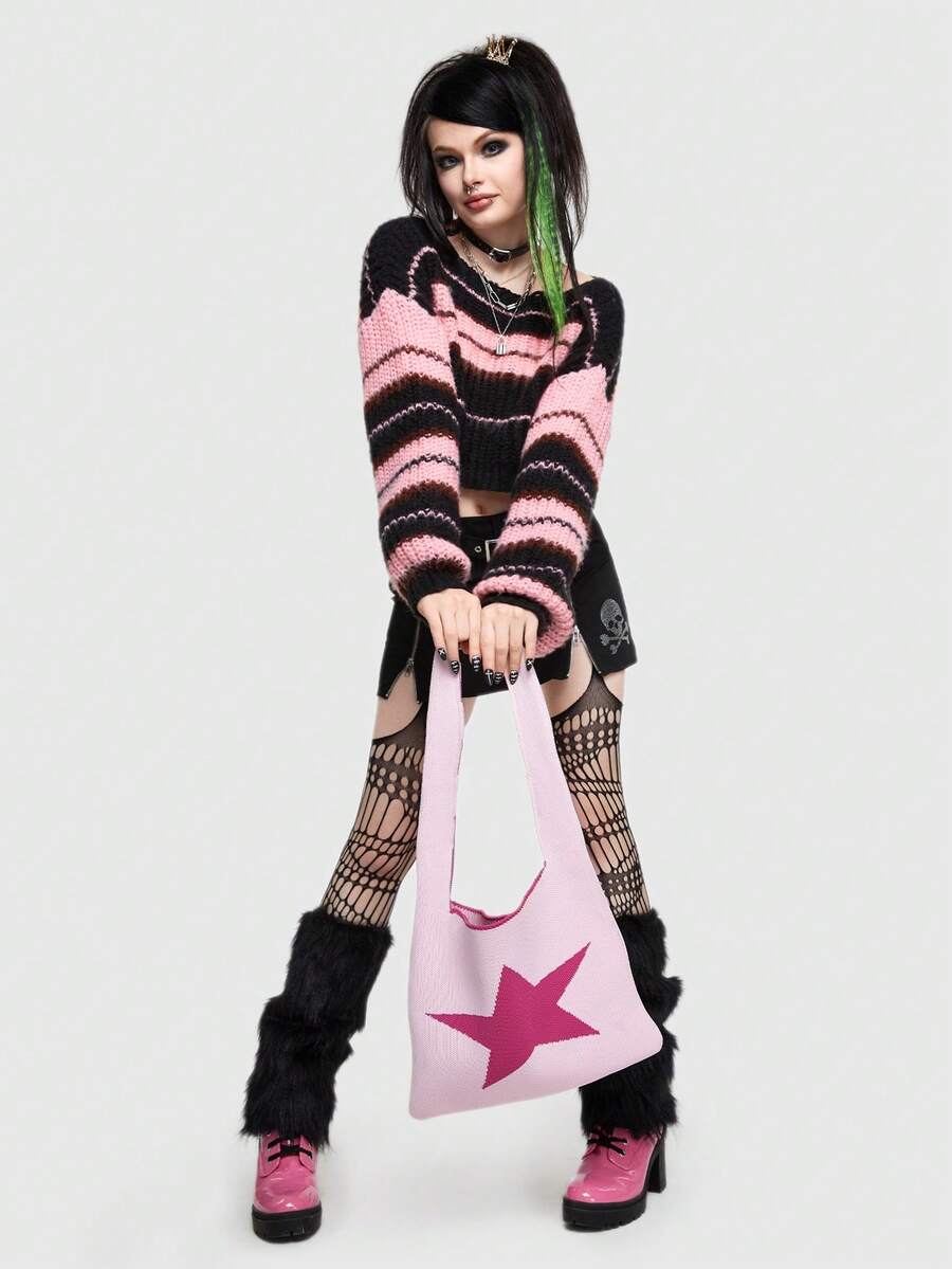 ROMWE Avant Medium Crochet Bag Fashion Star Graphic For Work