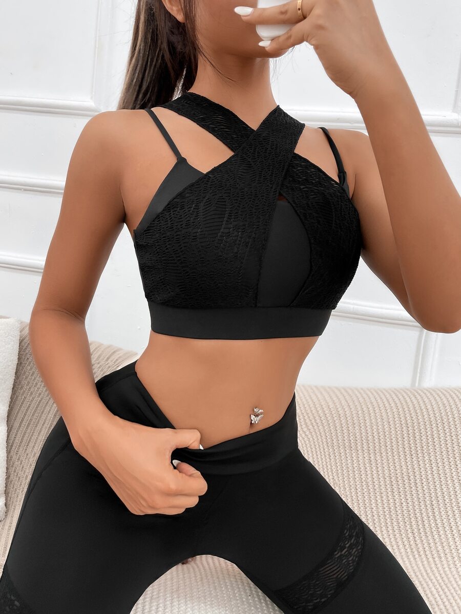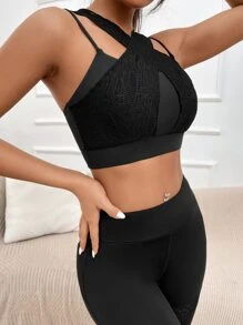 Medium Support Contrast Lace Crisscross Sports Bra