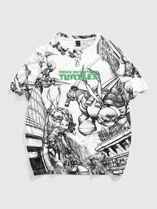 TEENAGE MUTANT NINJA TURTLES X ROMWE Men's All-Over Print White Short Sleeve T-Shirt, Casual Street Style, Daily Commute