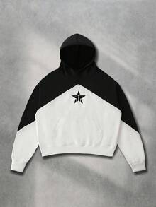 Street Life Men's Autumn Star Print Patchwork Contrast Color Hoodie Sweatshirt