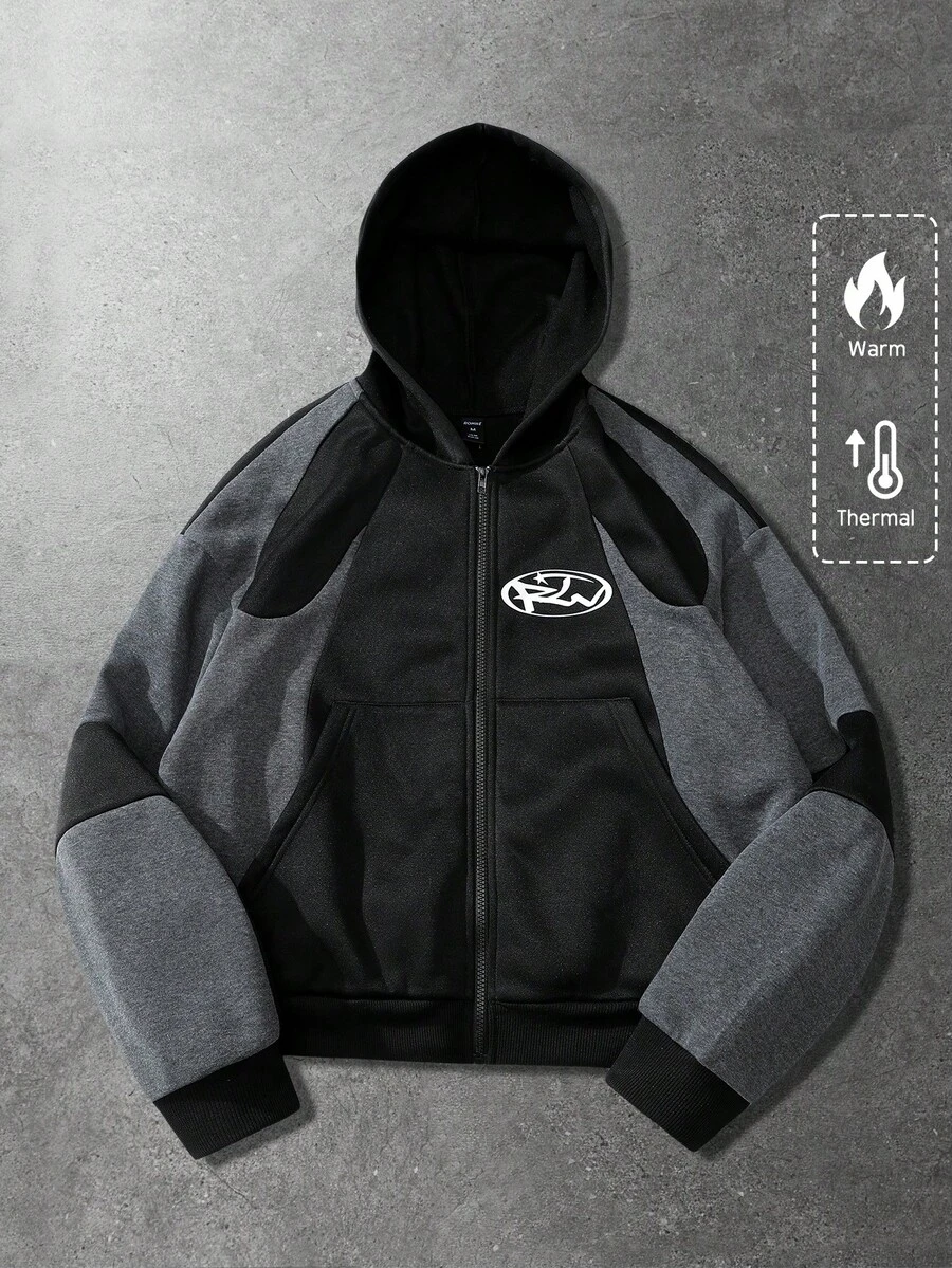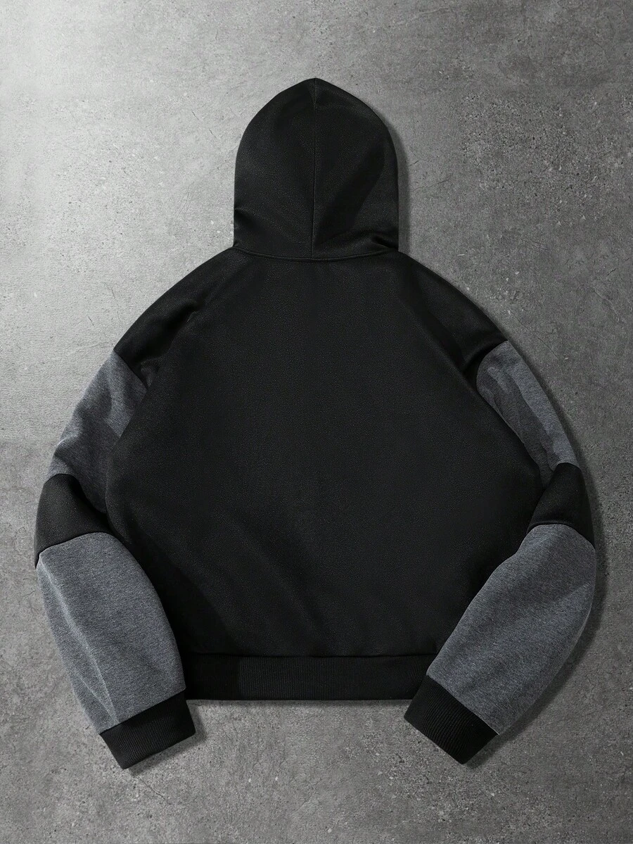 Street Life Men's Casual Contrast Color Graphic Print Zip-Up Hoodie Sweatshirt, Autumn/Winter