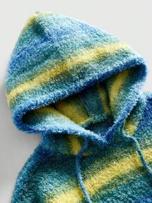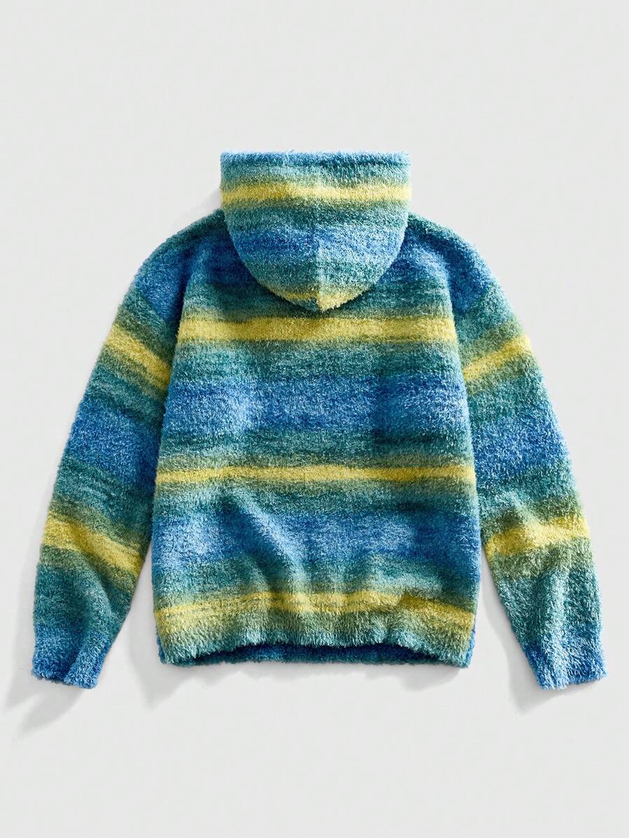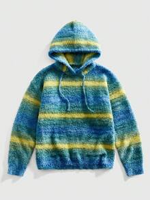 Street Life Men's Casual Contrast Color Loose Fluffy Knit Drawstring Hoodie Sweater, Autumn/Winter