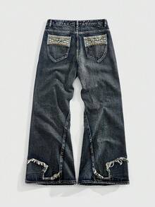 Street Life Men's Casual Fashion Street Vintage Raw Edge Loose Wide-Leg Jeans