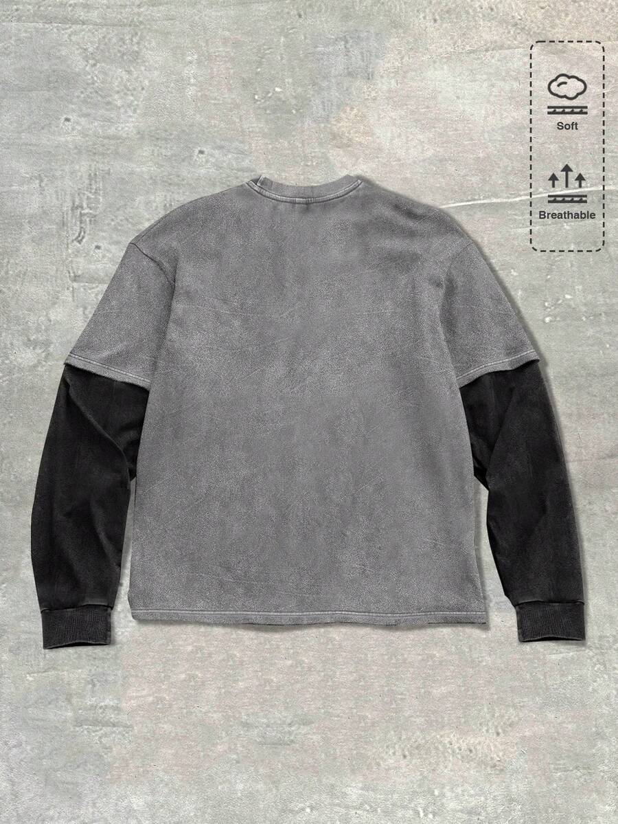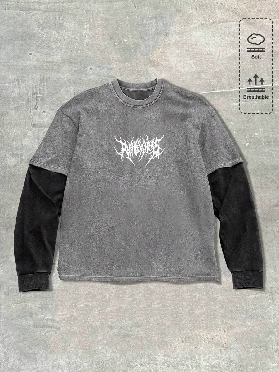 Men's Casual Gothic Contrast Color Patchwork T-Shirt, Autumn, Long Sleeve Top
