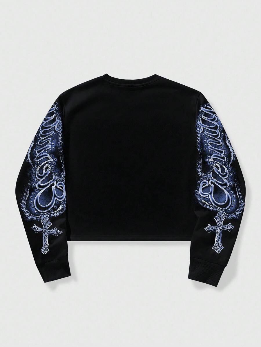 Street Life Men's Casual Letter & Cross Print Crew Neck Long Sleeve Pullover Sweatshirt, Autumn