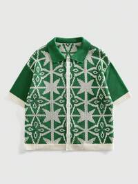 Men's Prep Zipper Placket Short Sleeve Five-Pointed Star Knit Top