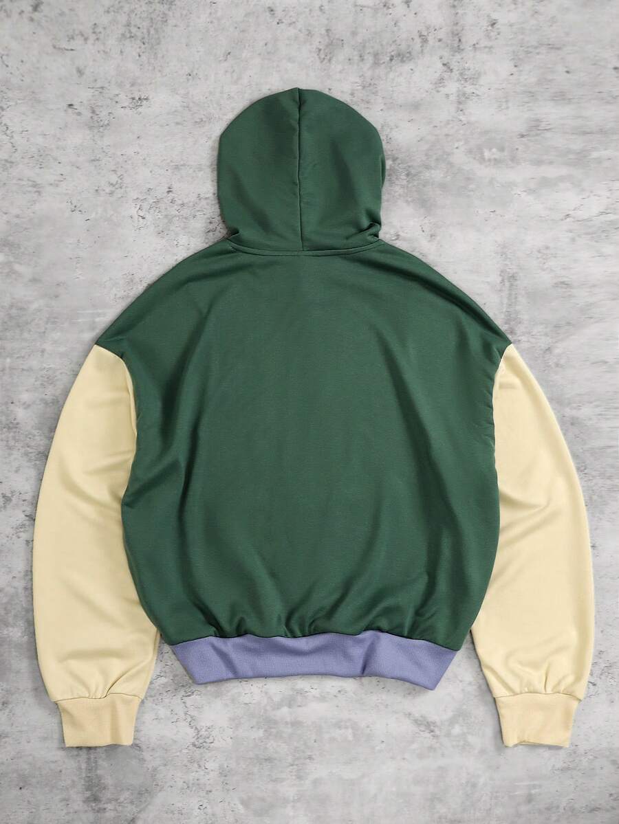 Men's Casual Patchwork Color Hoodie With Pockets, Autumn
