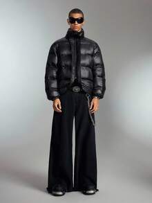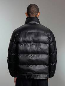 Street Life Men's Casual Solid Color Stand Collar Zip-Up Padded Coat, Winter , Fall