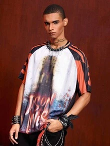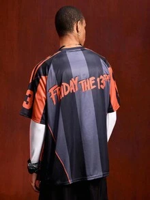 Friday the 13th X ROMWE Men's Casual Summer Letter Graphic Short Sleeve T-Shirt
