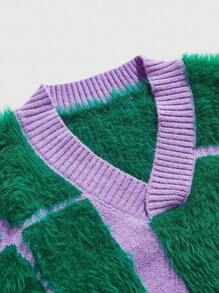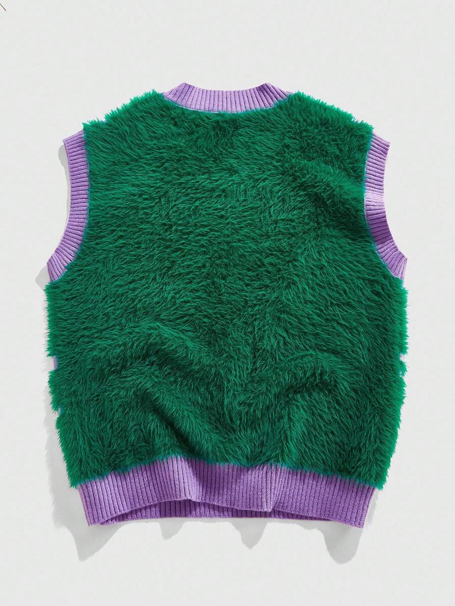 Street Life Men's Casual V-Neck Contrast Color Fuzzy Knit Sweater Vest, Autumn/Winter