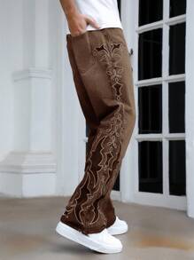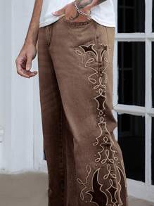 Street Life Men's Casual Washed Embroidered Patch & Rivet Decorated Denim Jeans