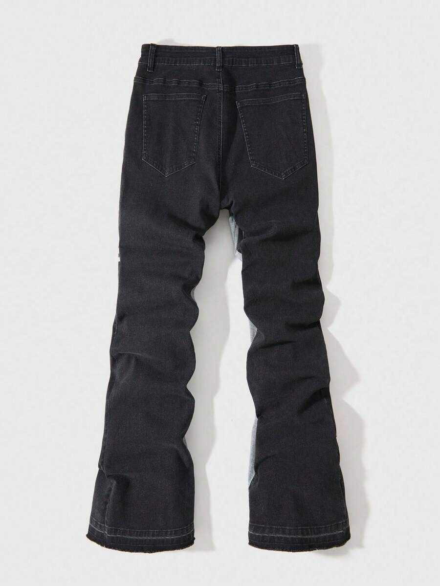 Street Life Men's Casual Washed Slogan Print Color Block Patchwork Denim Jeans