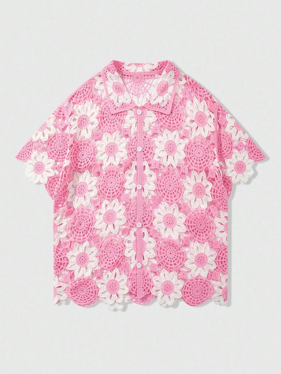 Street Life Men's Colorblock Water-Soluble Short Sleeve Casual Cardigan