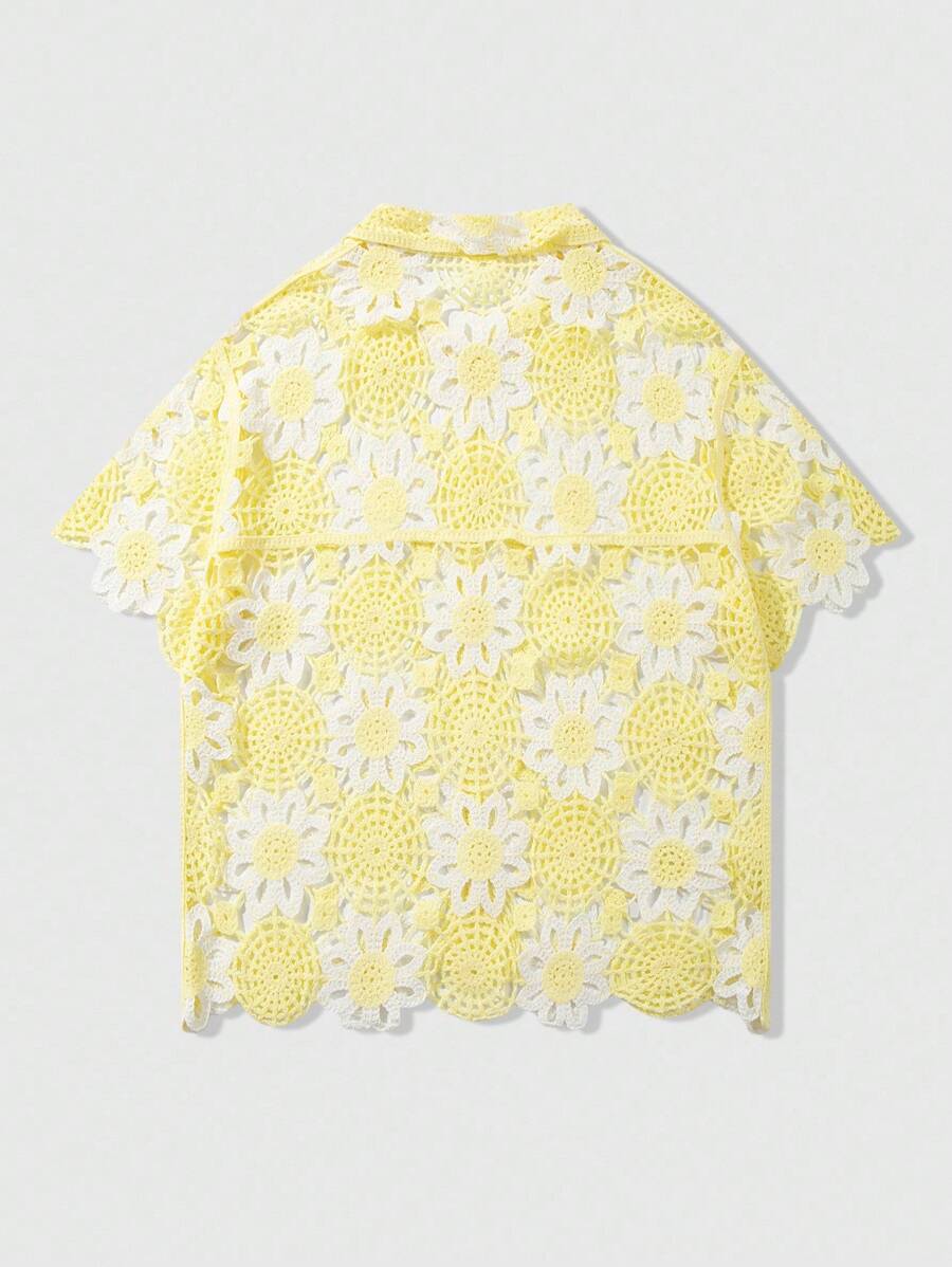 Street Life Men's Colorblock Water-Soluble Short Sleeve Casual Cardigan