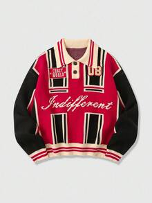 Prep Men's Contrast Color Jacquard Knit Casual Pullover Sweater, Fall Winter