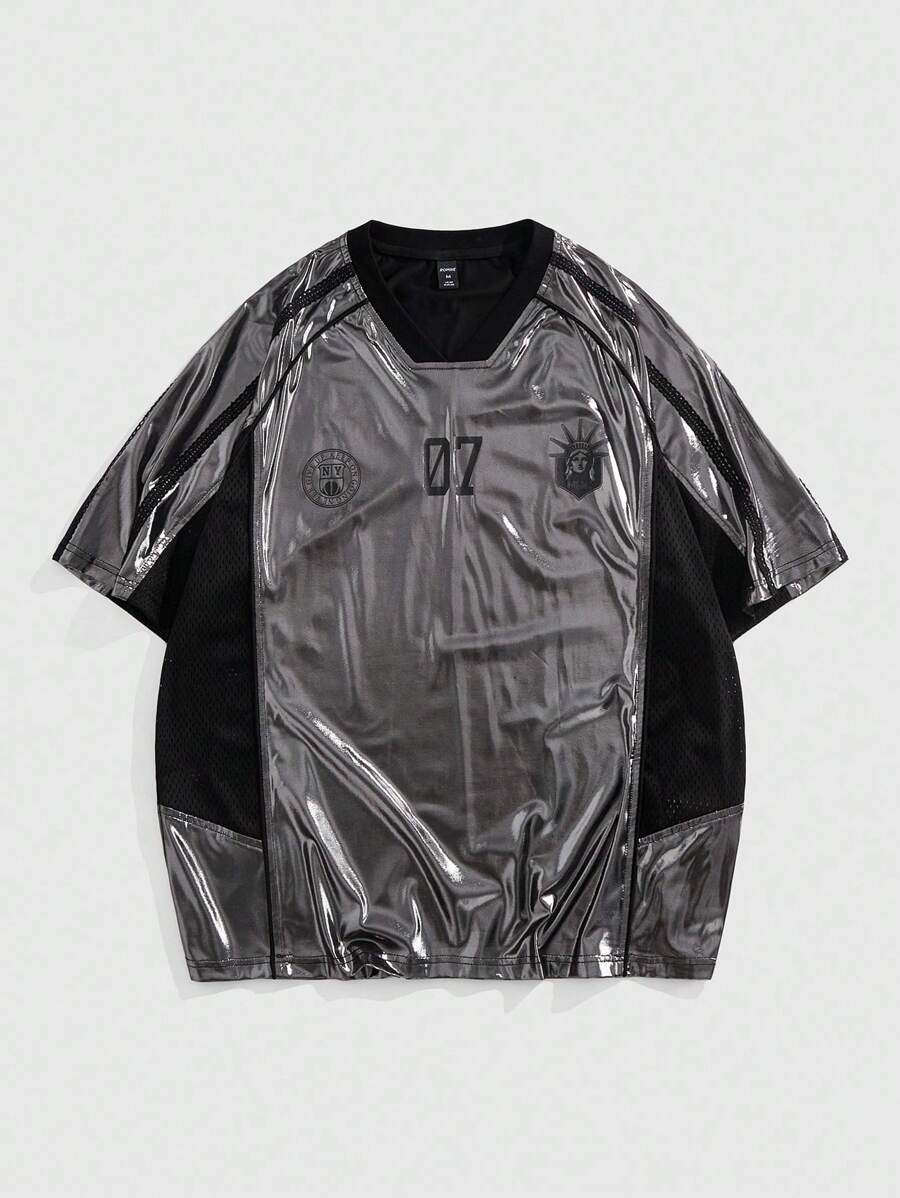 Prep Men's Contrast Color Letter Graphic Summer Short Sleeve Sports Jersey T-Shirt