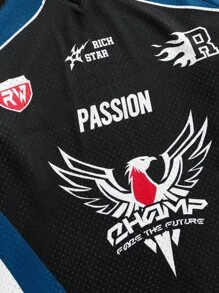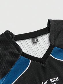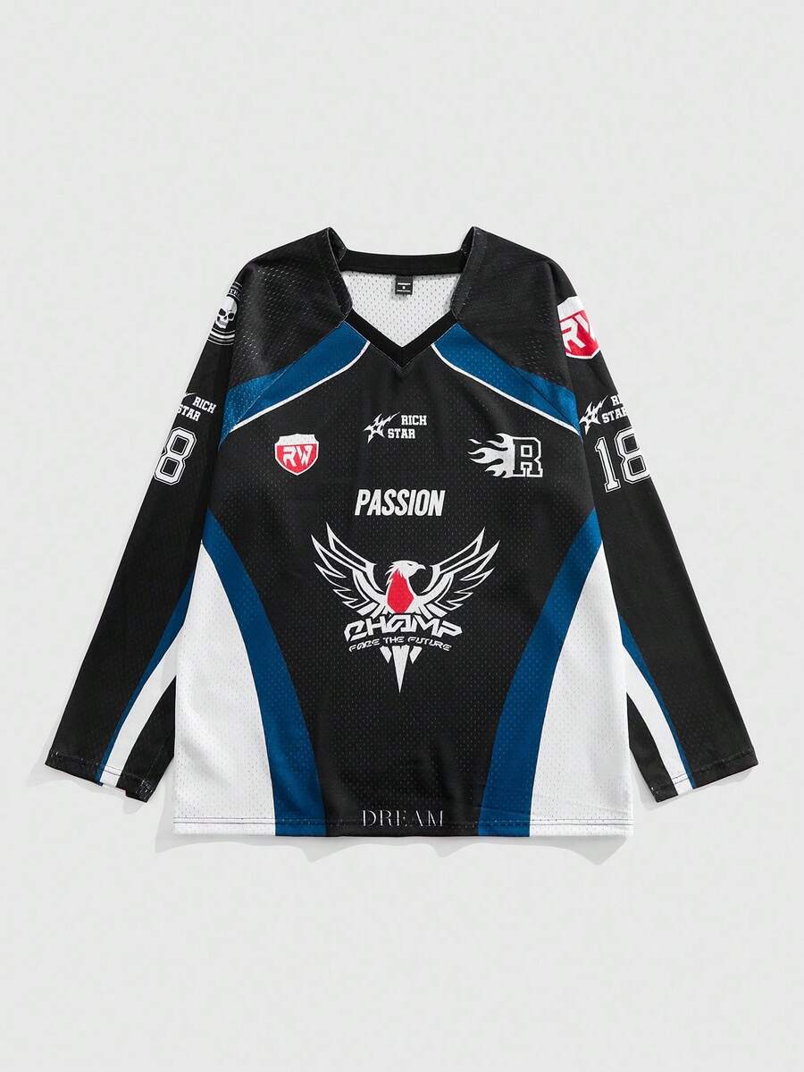 Prep Men's Contrast Color Patchwork Letter Print Retro Long Sleeve T-Shirt Jersey