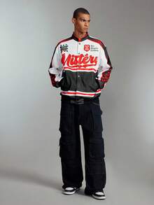 Prep Men's Contrast Color Print Long Sleeve Jacket Coat, Fall Winter