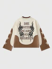 Street Life Men's Contrast Color Slogan Print Round Neck Casual Loose Long Sleeve T-Shirt