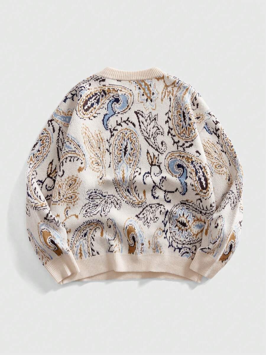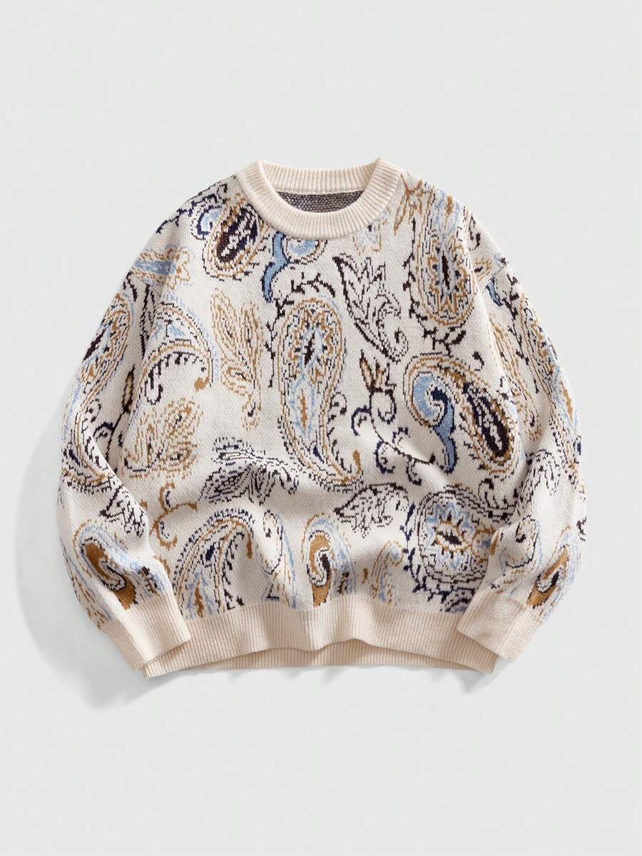 Men's Crew Neck Cashew Pattern Retro Knit Sweater