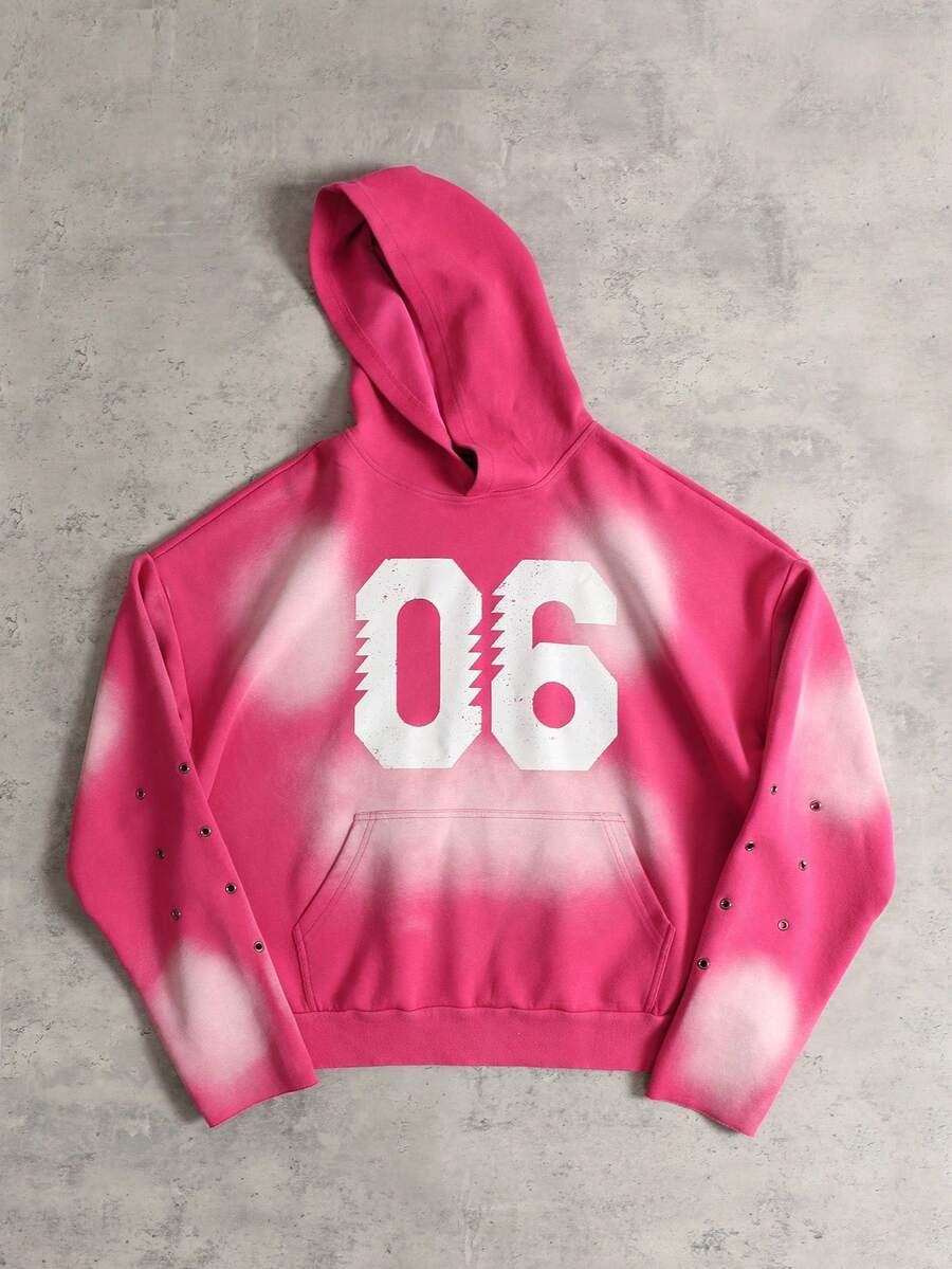 Street Life Men's Distressed Vintage Numeric Print Loose Fit Hoodie