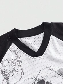 Goth Men's Fashion Contrast Color Number Patchwork Print T-Shirt