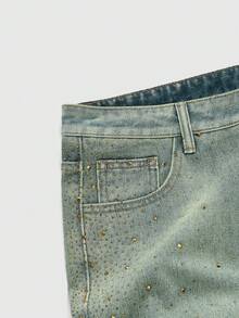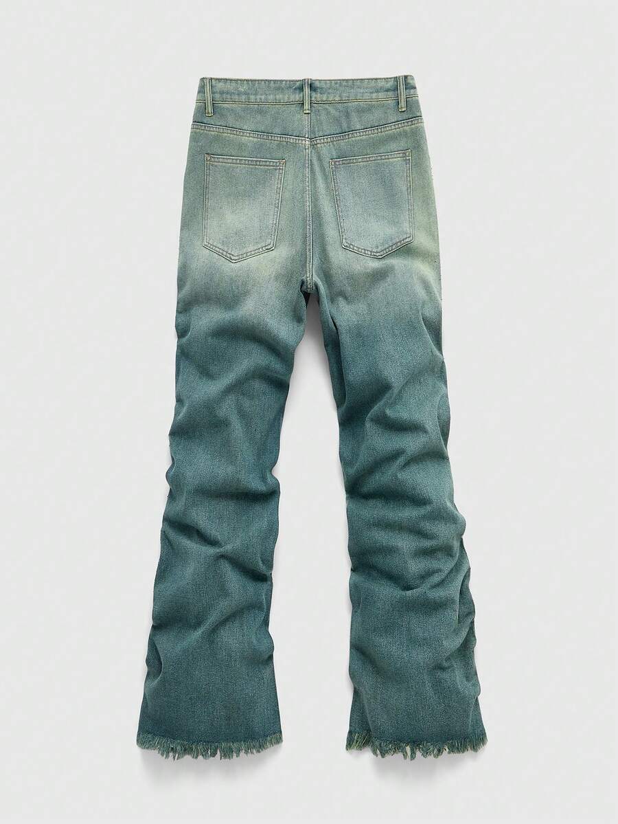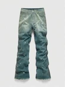 Grunge Punk Men's Gradient Color Rhinestone Decor Pocket Casual Jeans, Grunge