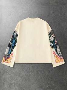 Street Life Men's Graphic Cross & Figure Print Long Sleeve T-Shirt, Vintage Street Style