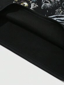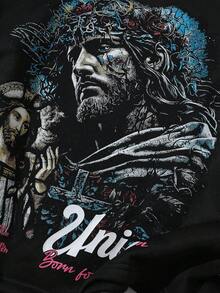 Street Life Men's Graphic Gothic Jesus Print Rhinestone Decor Crew Neck Loose Fit Casual Pullover Sweatshirt, For Fall