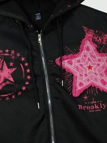 Street Life Men's Hooded Zip-Up Casual Pentagram Graphic Print Sweatshirt , Fall Winter