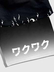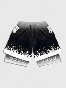 Anime Men's Letter & Flame Print Drawstring Waist Double Layer Shorts