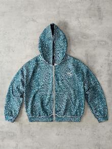 Men's Long Sleeve Zip-Up Collar Vintage American Style Leopard Print Hoodie