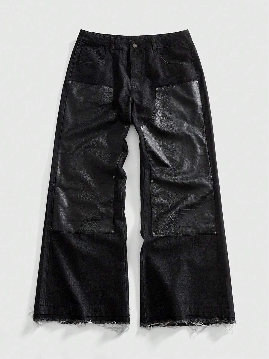 Street Life Men's Loose Fit Patchwork Cargo Denim Pants