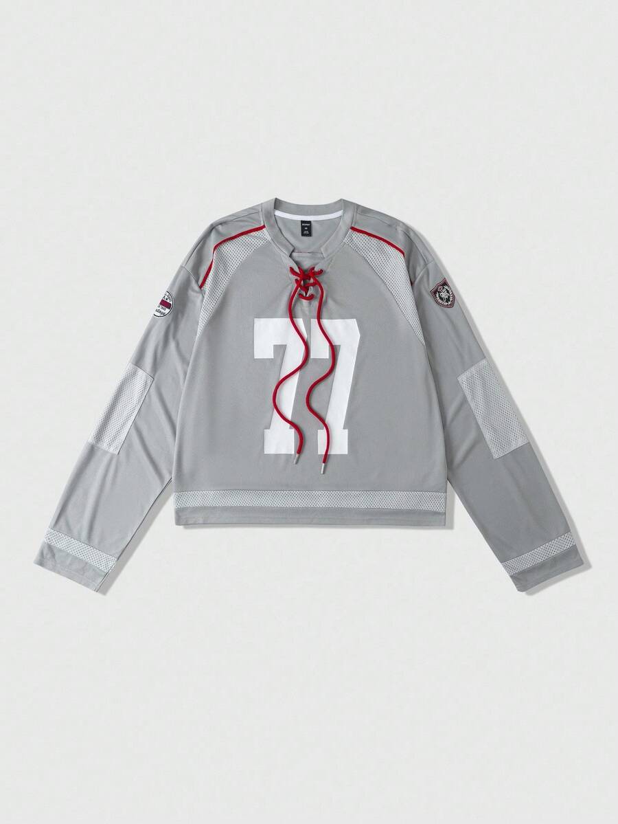 Street Life Men's Mesh Patchwork Long Sleeve Sports T-Shirt, Ice Hockey Jersey, Fall