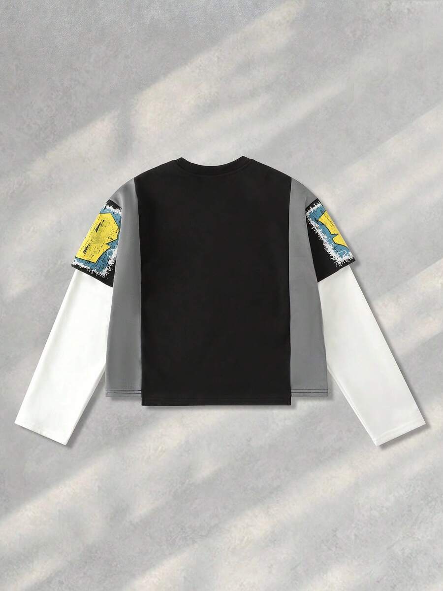 Street Life Men's Patchwork Contrast Color Print 2 In 1 T-Shirt, For Fall