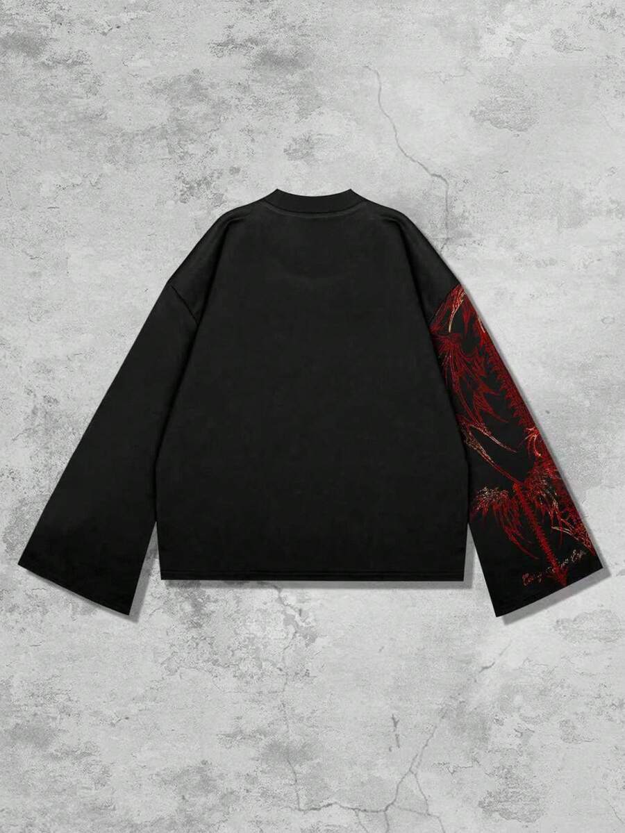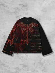 Goth Men's Punk Street Style Long Sleeve T-Shirt, Suitable For Spring And Autumn Halloween, For Fall, 2000s Style