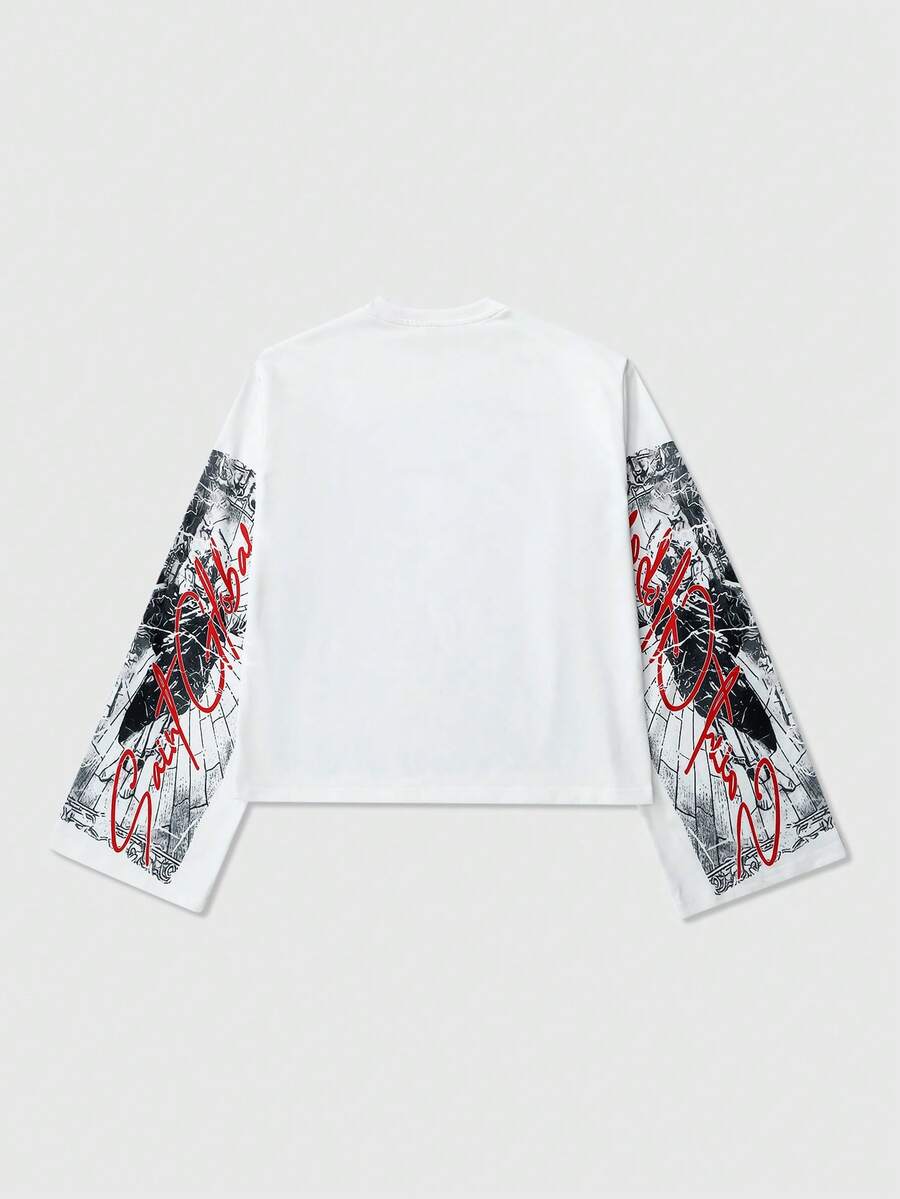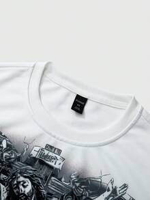 Street Life Men's Religious Print Long Sleeve Shirt, Powerful Graphic Design, Comfortable Fabric Suitable For Casual Outings And Music Festivals