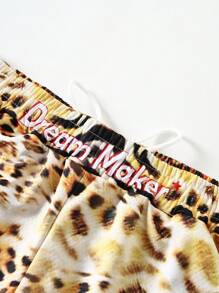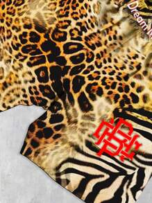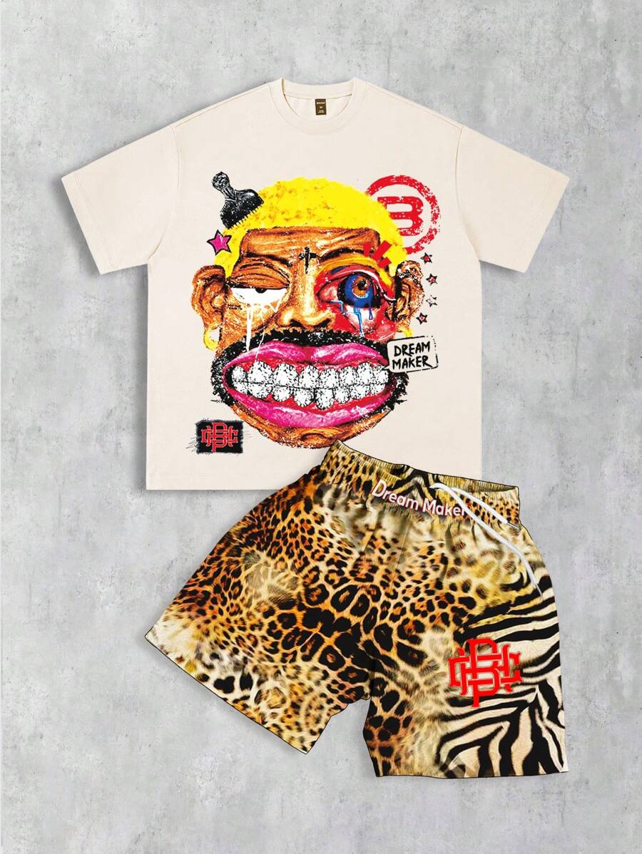 Street Life Men's Retro Cartoon Character Print Short Sleeve T-Shirt & Leopard Print Shorts Set, Spring/Summer