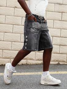 Street Life Men's Rhinestone Decor Pocket Casual Fashion Denim Shorts