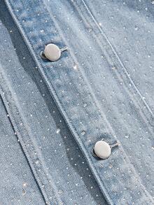Street Life Men's Rhinestone Embellished Long Sleeve Short Denim Jacket, Vintage Street Style