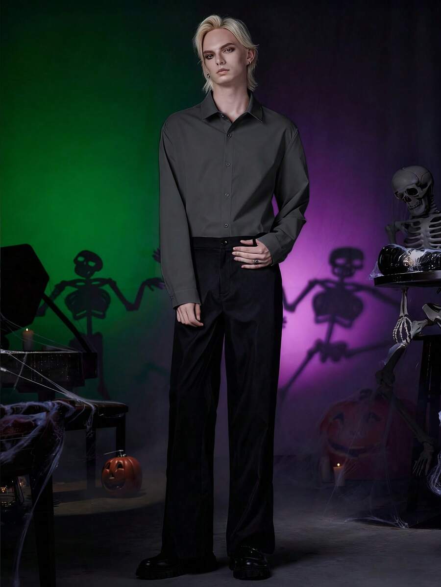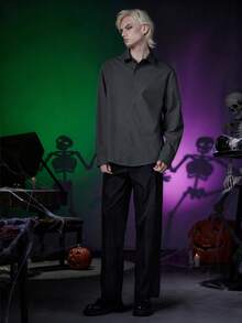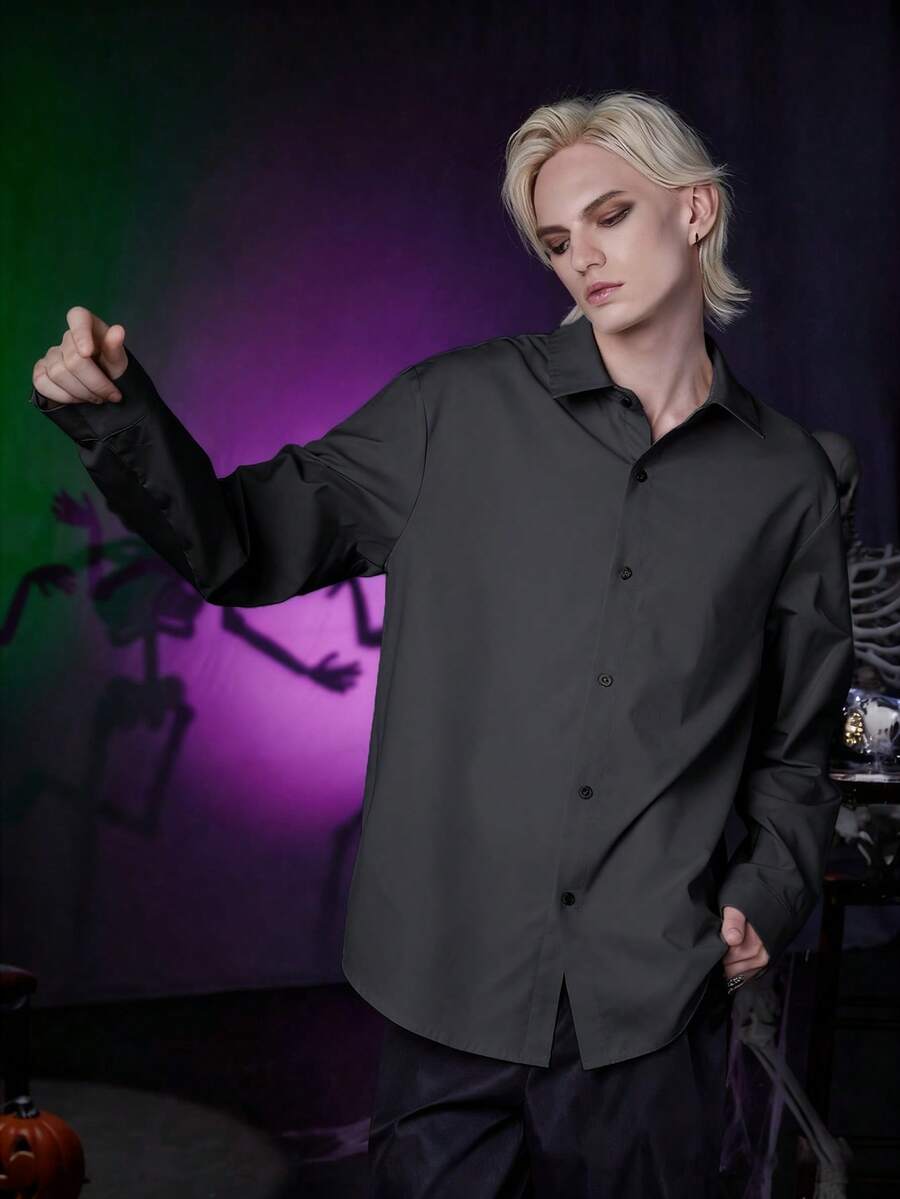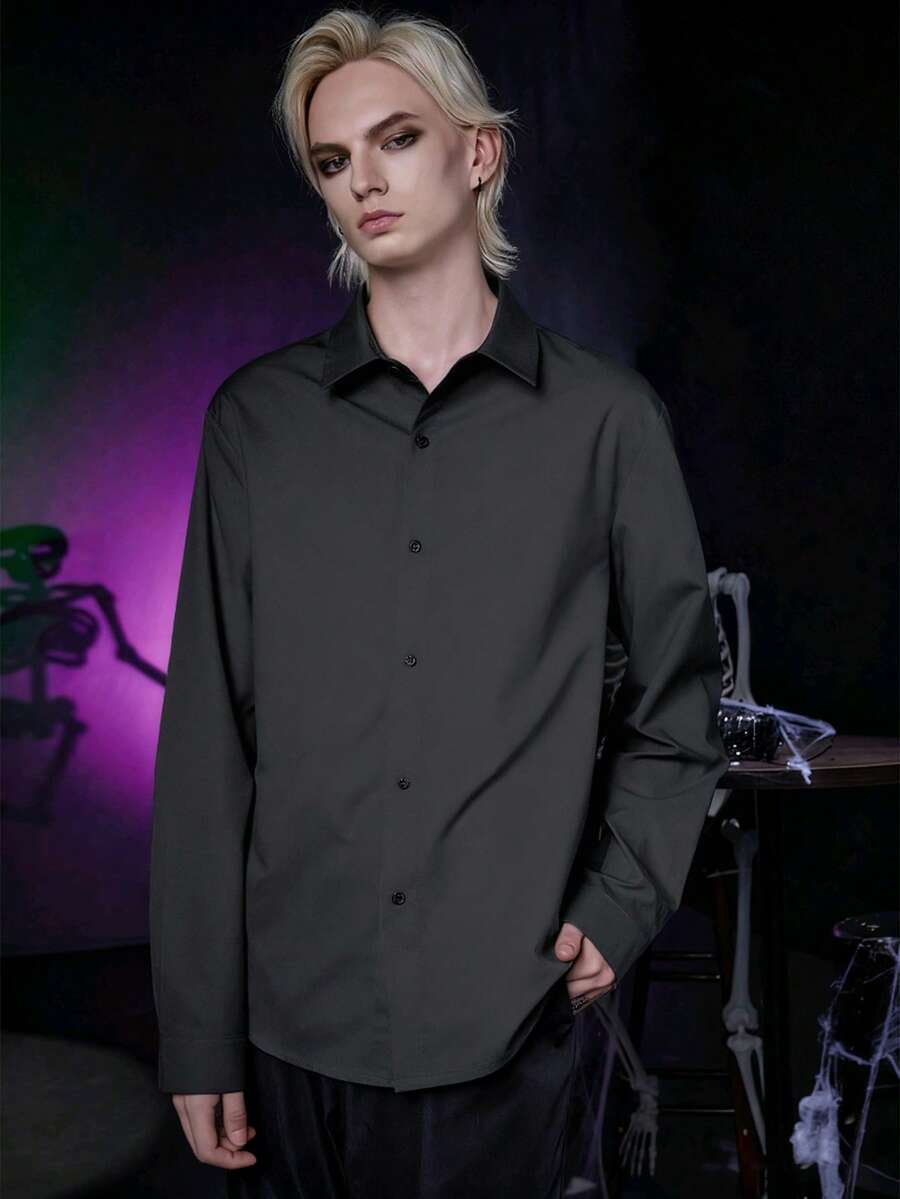 Men's Solid Color Gothic Long Sleeve Single-Breasted Casual Loose Shirt