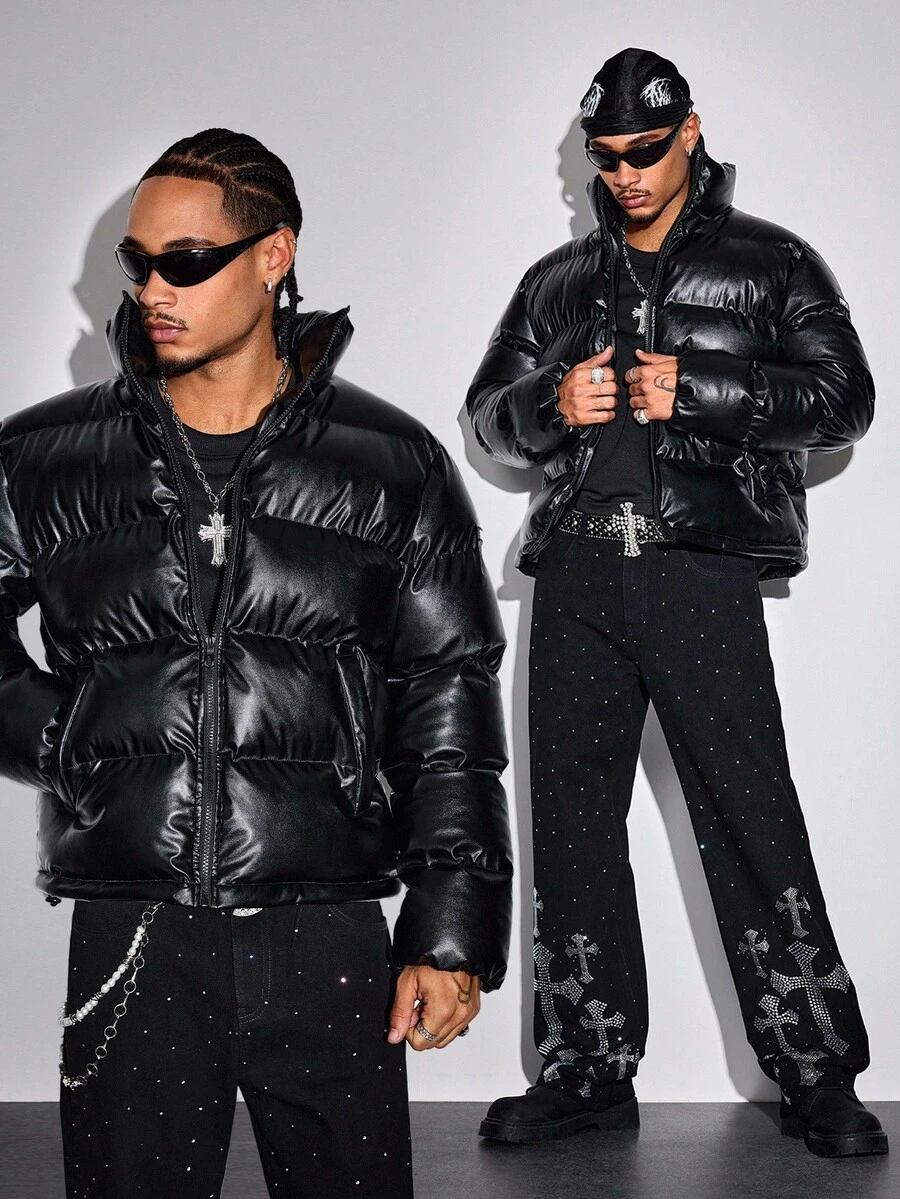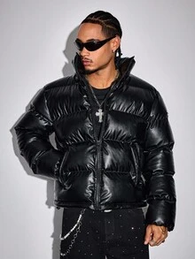Street Life Men's Solid Color Turtleneck Warm Winter Fashionable Versatile Jacket
