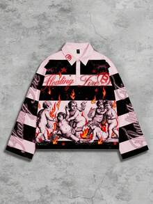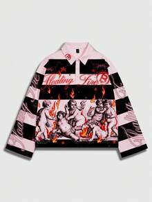 Street Life Men's Street Graphic Religious Print Striped Polo Collar Long Sleeve T-Shirt, Autumn/Winter