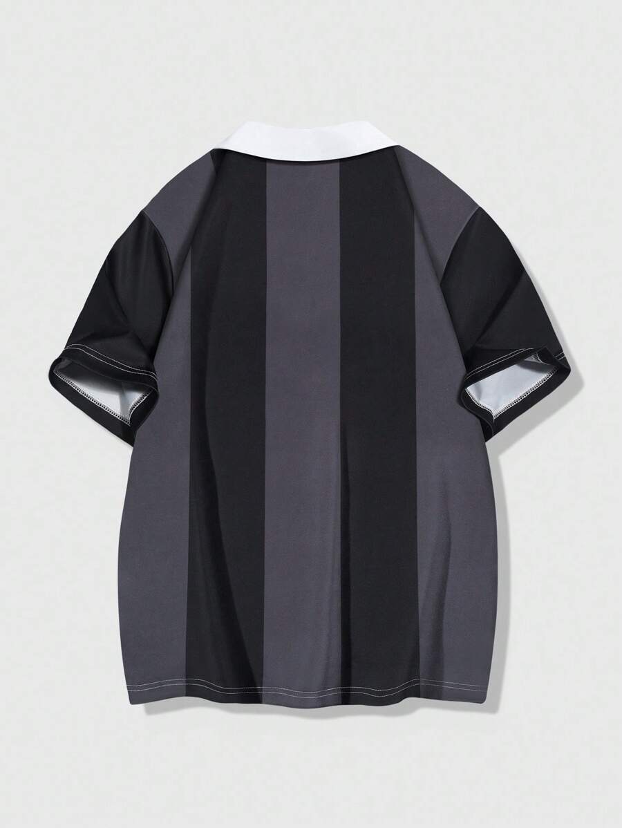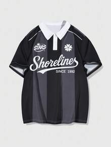 Prep Men's Striped Short Sleeve Letter Graphic Patchwork Collar Casual Polo Shirt Sporty Jersey