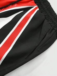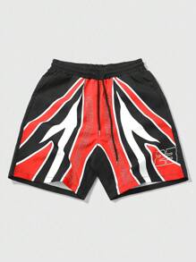 Prep Men's Summer Casual Street Letter Print Contrast Color Drawstring Waist Biker Shorts