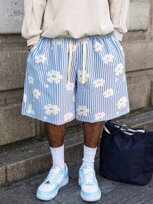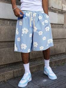 Street Life Men's Summer Casual Striped Floral Print Drawstring Shorts